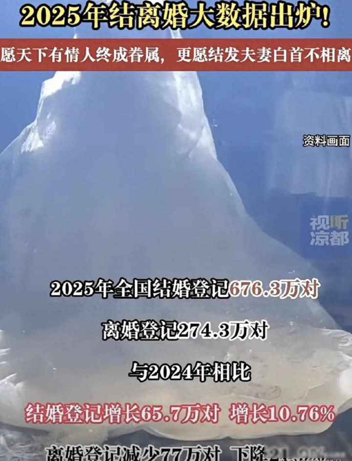 但内容情况和东谈主们念念的不太相同,2025年天下成婚登记有676.3万对,比前一年多出百分之十以上,分离登记是274.3万对,比上一年减少两成多,2024年景婚数目一经跌到610万对,创下最低纪录,截至在2025年反而回升了,这说来岁青东谈主并莫得毁灭成婚这件事,仅仅变得愈加严慎,不急着立地投入婚配,而是但愿看了了再作决定。