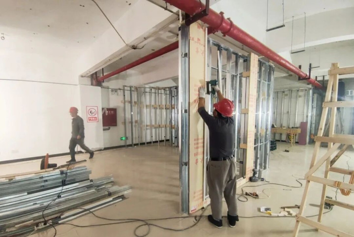 面前正全力鞭策封装下层阻燃板、电缆桥架及钢质穿线导管敷设,以及户外走廊梁柱原真石漆断根、从头挂网抹抗裂砂浆等功课,瞻望3月中旬完成。后续,咱们将按盘算鞭策展厅防火石膏板封装、批刮石膏及腻子、空调安设、户外防滑地砖铺装等工序,瞻望3月下旬完成;随后开展展厅墙体饰面、好意思工制作、多媒体斥地调试及户外钢质展示造型安设等结果使命。