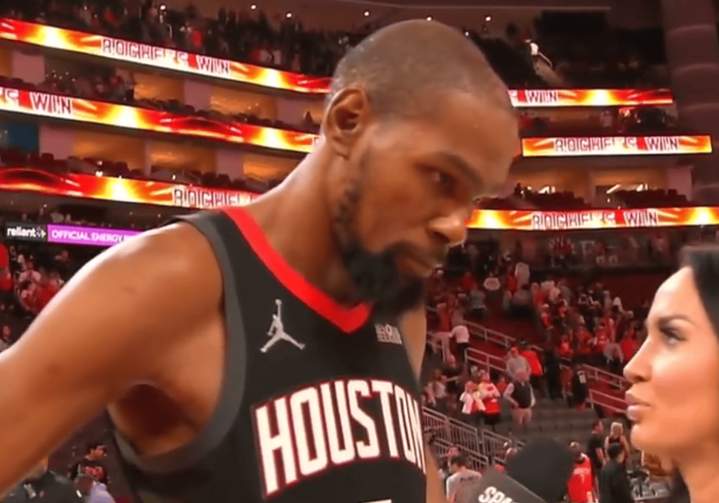 赛后,火箭球员凯文-杜兰特继承媒体采访,说念及本场比赛的绝杀进球,杜兰特示意: