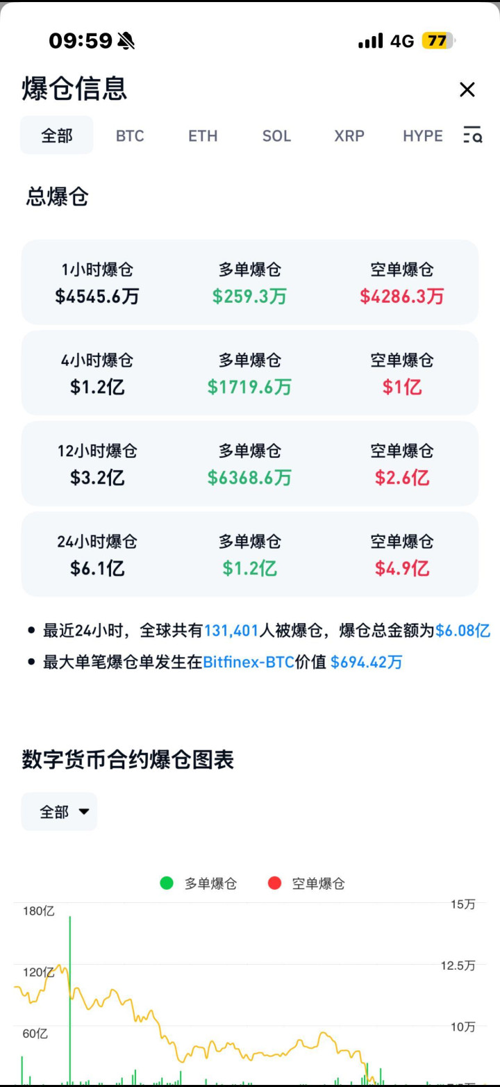 豪门国际官网娱乐网凭证CoinGlass数据统计,最近24小时,宇宙共有131782东说念主被爆仓,爆仓总金额为6.09亿好意思元。其中,多单为1.2亿好意思元,空单达4.9亿好意思元。
