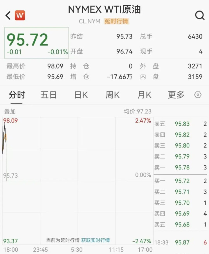 客服QQ:88888888海外原油高开,WTI原油一度龙套98好意思元/桶,随后短线跳水,跌破96好意思元/盎司。