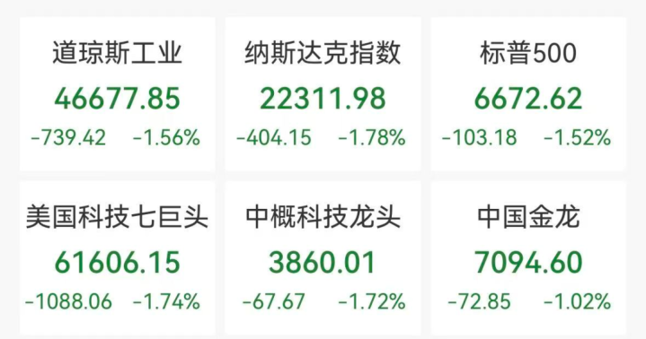 周四(3月12日),好意思国三大股指全线收跌,说念指跌1.56%,标普500指数跌1.52%,纳指跌1.78%。