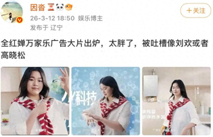 近日,跳水奥运冠军全红婵成为了驰名滚水器品牌万家乐的代言东谈主。干系词全红婵在官方的一张宣传像片上,被网友吐槽新造型像有名歌手刘欢!音信一传出,也引来了网友以及媒体的热议和关注。