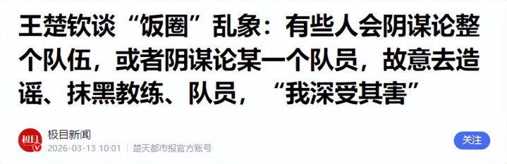 极目新闻|王楚钦谈“饭圈”乱象:有些东谈主会方案论通盘队伍,或者方案论某一个队员,罕见去非难、抹黑教会、队员,“我深受其害”