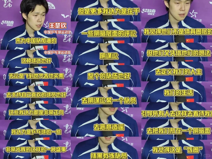 更让东谈主不齿的是,他们坏心挑拨王楚钦和队友之间的规划。