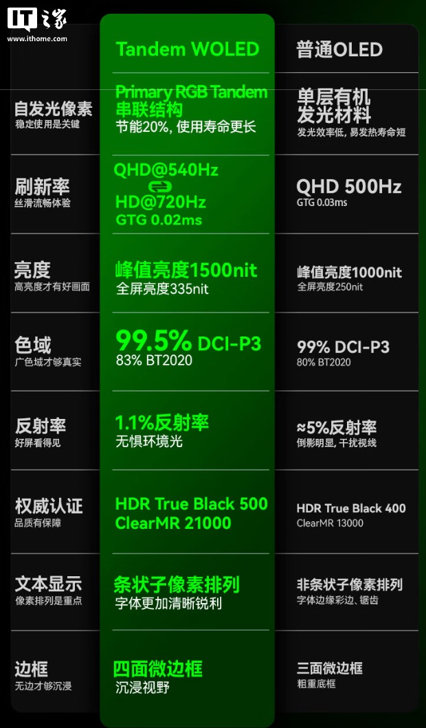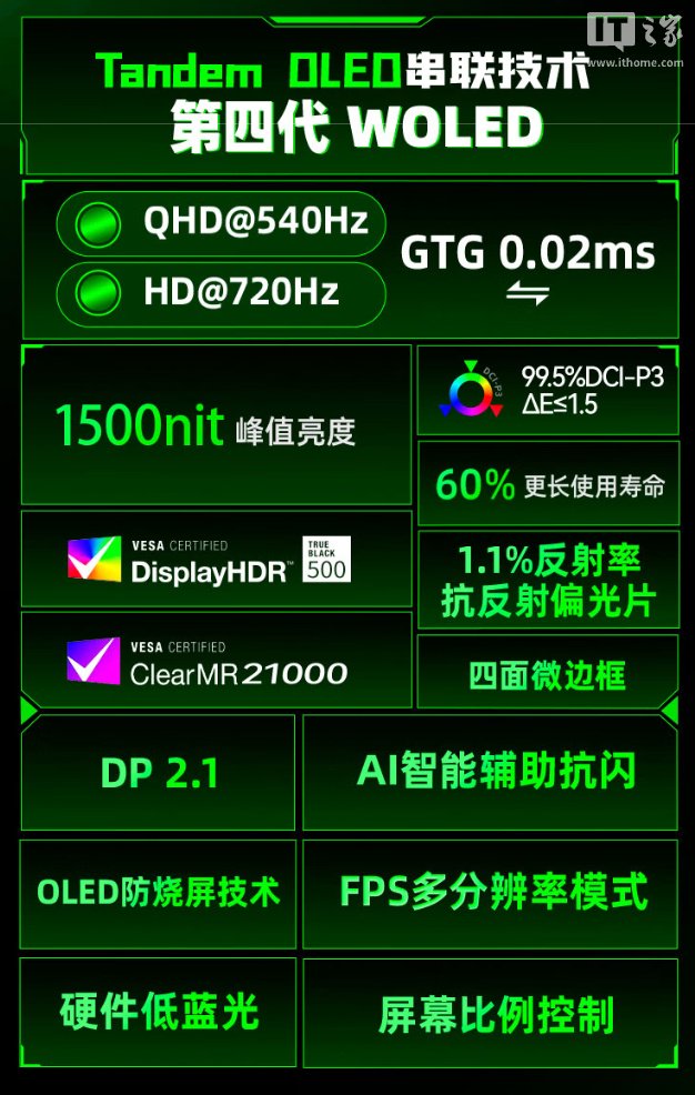 该机配备的 LG 第四代 W-OLED 面板赞助以 2560x1400 诀别率 540Hz 或 1280x720 诀别率 720Hz 泄漏,SDR 亮度 335 尼特,HDR 峰值亮度 1500 尼特,AG游戏官网GtG 反映速率 0.02ms,泄漏器赞助原生 10-Bit 色调,隐敝 99.5% DCI-P3 色域。
