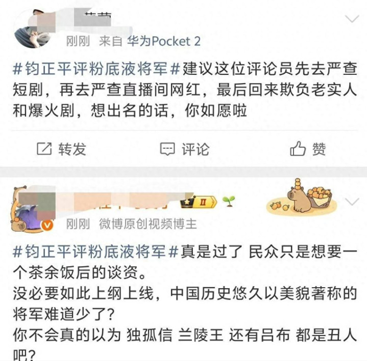 粉丝们一窝风跑去围攻军方的账号“钧正平”,
