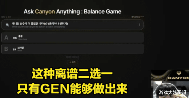 事件的导火索,是Canyon参与的“二选一”问答,用心爱哪国的食品中,将香港当成寥寂国度,名义上只是文娱要领,但题目建造自身就存在较着问题,当选项触及明锐地缘主意时,无论怎样作答,齐容易激励争议,这种“奈何选齐远离”的策动,被很多不雅众解读为浮泛基本知识,甚而是对明锐议题的大意处理。